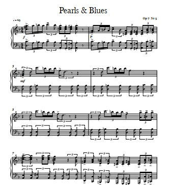 A collection of several works by Elena Cobb for piano: 1. Blue River 2. Stardust 3. Cloud Seven, Latin 4. Mrs. Van der Blond 5. Pearls and Blues 6. Tango Leon