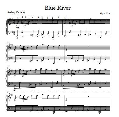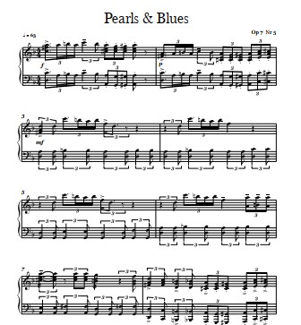 A collection of several works by Elena Cobb for piano: 1. Blue River 2. Stardust 3. Cloud Seven, Latin 4. Mrs. Van der Blond 5. Pearls and Blues 6. Tango Leon
