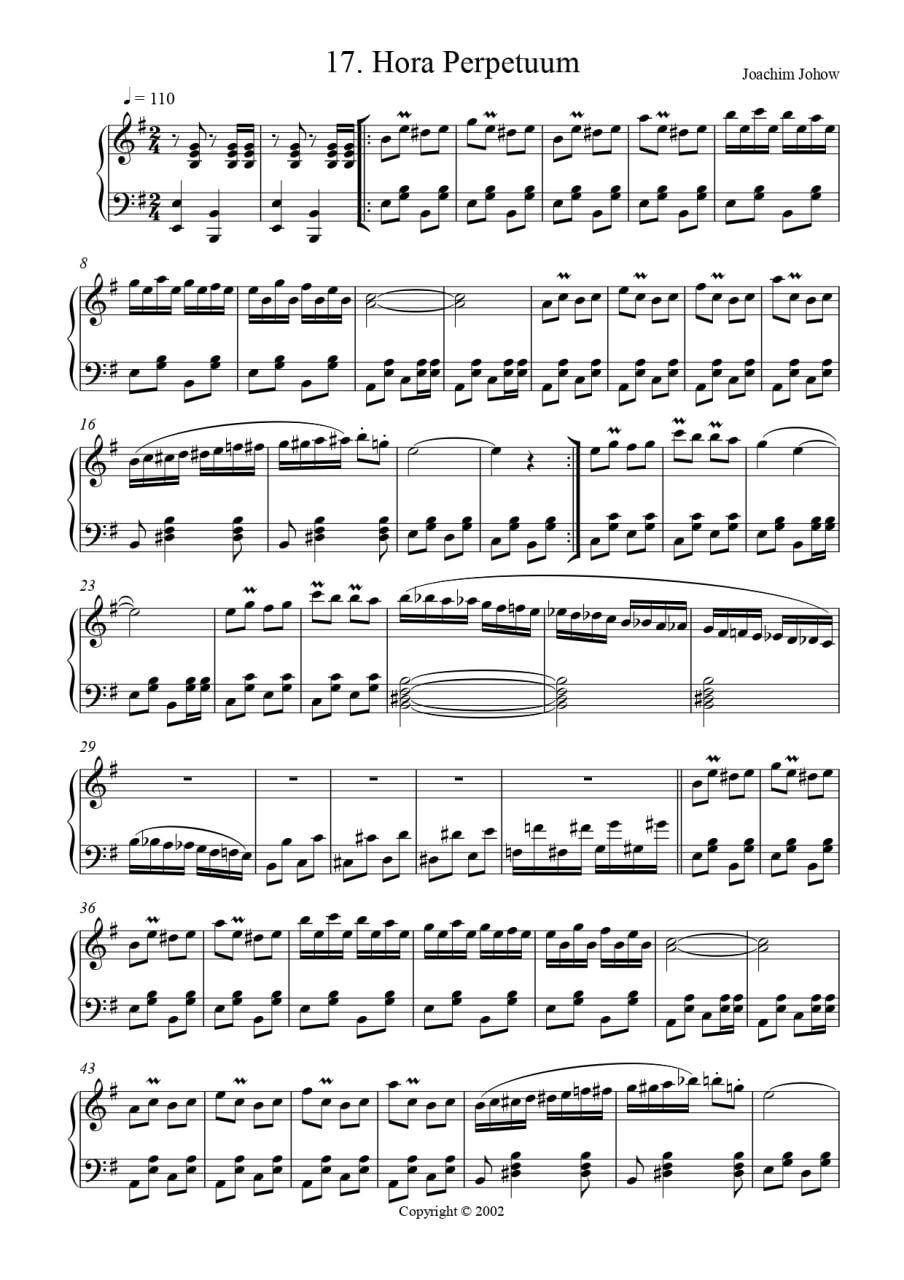 آهنگساز یواخیم یوهو در سال ۱۹۵۲ در برلین متولد شد و در طول سالها موسیقیهایی با ژانرها و سبکهای مختلف برای گروههای مختلف ساخته و تنظیم کرده است. در حال حاضر، تعداد تصنیفهای او از ۱۰۰۰ فراتر رفته است. این تصنیفها طرفداران زیادی در سراسر جهان پیدا کردهاند که آنها را اجرا میکنند یا در آموزش موسیقی از آنها استفاده میکنند.