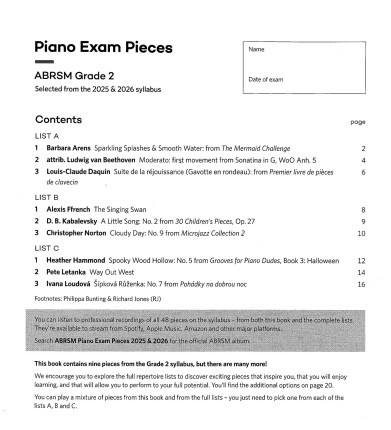 قطعات امتحان پیانو درجه 2 ABRSM منتخب از Abrsm 2025 و 2026