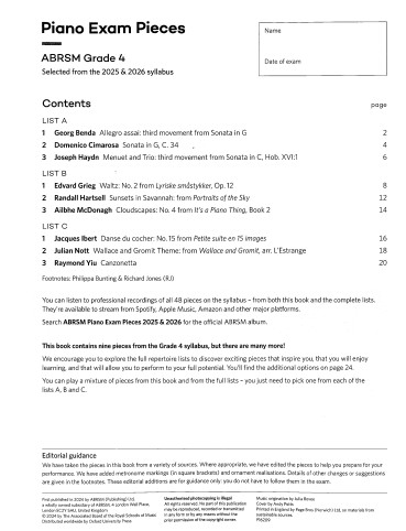 قطعات امتحان پیانو درجه 4 ABRSM منتخب از Abrsm 2025 و 2026 همراه با فیلم قطعات در کانال سرزمین پیانو