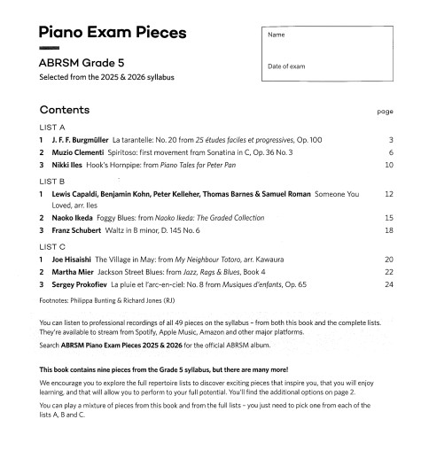 Selected ABRSM Grade 5 Piano Exam Pieces from Abrsm 2025 and 2026 with videos of the pieces on the Piano Land Channel.