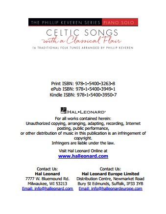 پیدیاف - ۱۶ آهنگ فولک سنتی مجموعه آثار فیلیپ کوران تنظیمکننده: فیلیپ کوران سطح پیانو: متوسط تا اواخر متوسط کوران از ابزارهای آهنگسازی کلاسیک برای تبدیل این آهنگهای سلتیک به قطعاتی با شخصیتهای متمایز برای پیانو سولو استفاده کرد. شامل: بیشه خاکستر • باربارا آلن • ناطور دشت • کنار باغهای سالی • بیداری فینگان • گراون • رقص کری • دریاچه لوموند • مالی مالون (خروسکها و صدفها) • آخرین گل رز تابستان • ولگرد وحشی • و بسیاری دیگر. اش گروو باربارا آلن ناقوسهای آبی اسکاتلند ناتور دشت در پایین باغهای سالی بیداری فینیگانها گاریون پسری از کوهستان، عشق من متولد شد سرگردان ایرلندی رقص ترسناک دریاچه لوموند مالی مالون (کاکلز و صدفها) طلوع ماه آواز قایق آسمانی این آخرین گل تابستان است سرگردان وحشی
